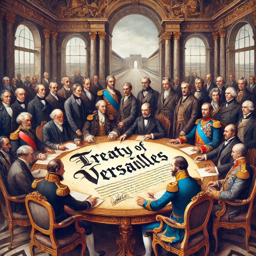معاهدة فرساي: وقعت في 28 يونيو 1919، وفرضت عقوبات قاسية على ألمانيا، بما في ذلك تعويضات حربية (الغرامات) وفقدان الأراضي والتخفيض الكبير في قواتها المسلحة. كانت هذه العقوبات نتيجة مباشرة للحرب العالمية الأولى، حيث اعتبرت الدول المنتصرة أن هذه التدابير ضرورية لضمان عدم قدرة ألمانيا على إعادة بناء قوتها العسكرية في المستقبل. كما تضمنت المعاهدة قيوداً على الصناعات العسكرية والسيطرة على بعض المناطق الاستراتيجية، مما أثر بشكل كبير على الاقتصاد الألماني وأدى إلى حالة من الاستياء والغضب بين المواطنين، ويعتبر الكثيرون هذه المعاهدة أحد الأسباب الرئيسية لظهور التوترات التي أدت إلى الحرب العالمية الثانية.